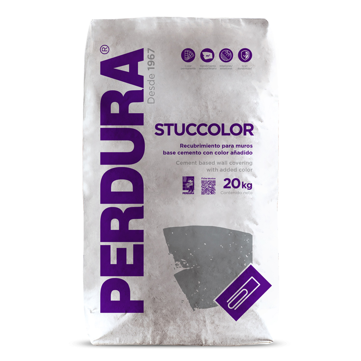 RECUBRIMIENTO PARA MUROS ELABORADO A BASE DE CEMENTO PORTLAND CON PRODUCTOS QUÍMICOS Y COLOR INTEGRADO DE ALTA CALIDAD QUE NO SE DECOLORA CON EL PASO DEL TIEMPO, CUENTA CON UNA GRANULOMETRÍA ADECUADA PARA OBTENER UN ACABADO PERFECTO, EN CASO DE QUE NO SE APLIQUE ALGÚN SELLADOR ESTE RECUBRIMIENTO PERMITE LA SALIDA DE HUMEDAD EVITANDO DAÑOS EN EL MURO. ES FÁCIL DE APLICAR Y BRINDA ALTA RESISTENCIA Y DUREZA.
